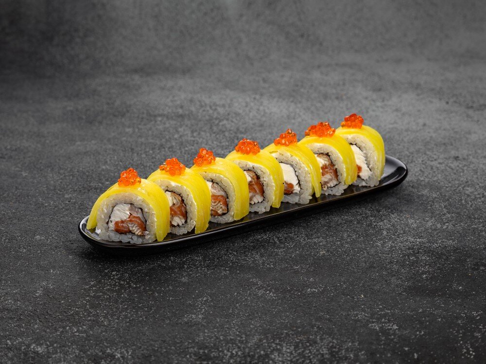 Роллы Диско — изысканное блюдо в категории роллов, которое сочетает в себе нежность творожного сыра, пикантность лосося и угря, а также утончённый вкус красной икры и маринованного дайкона