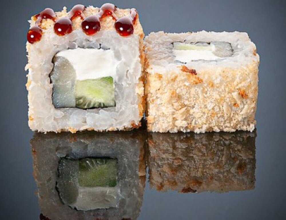 Масляная рыба, огурчик, кунжут, соус унаги, творожный сыр Cremette Professional.