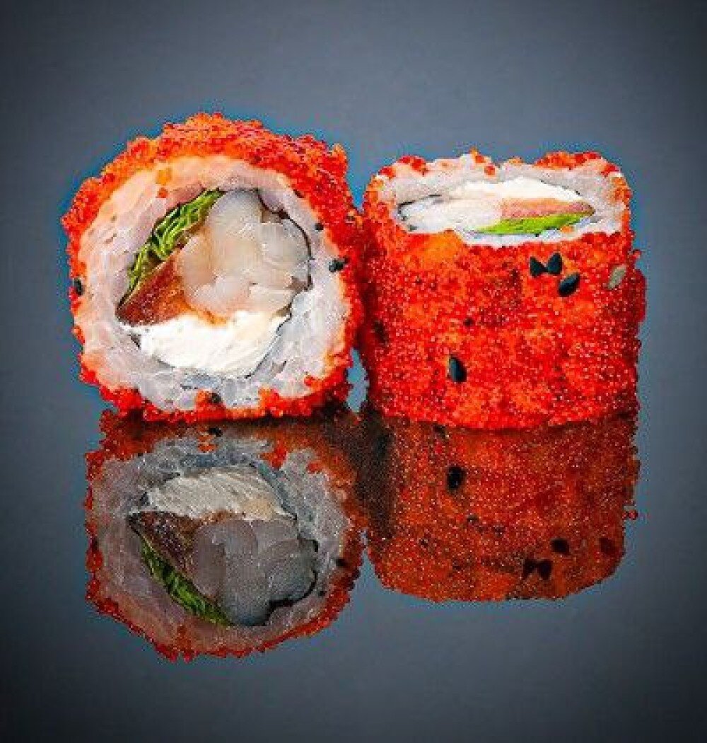 Лосось, креветка, огурчик, икра тобико, творожный сыр Cremette Professional.