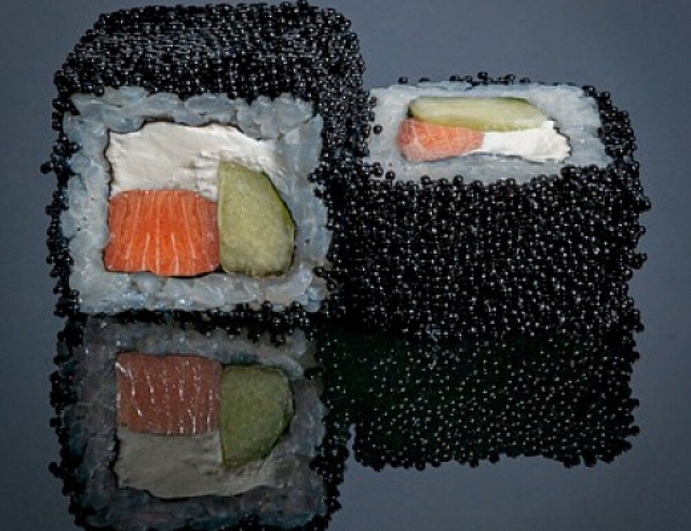 Чёрная икра тобико, лосось, огурчик, творожный сыр Cremette Professional.