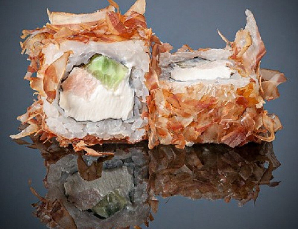 Стружка тунца, огурчик, поджаренная куриная грудка, творожный сыр Cremette Professional.