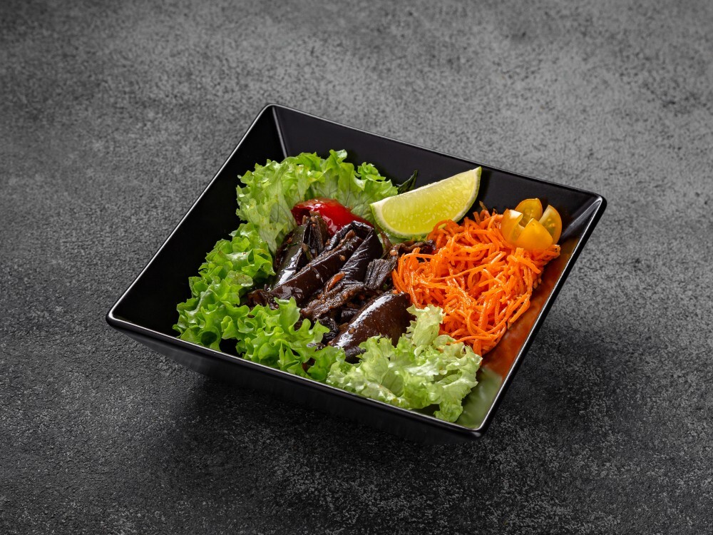 Баклажаны Хе – пикантное блюдо с острым вкусом и приятным пряным ароматом. Готовится на растительном масле с добавлением моркови, красного перца и восточных приправ.