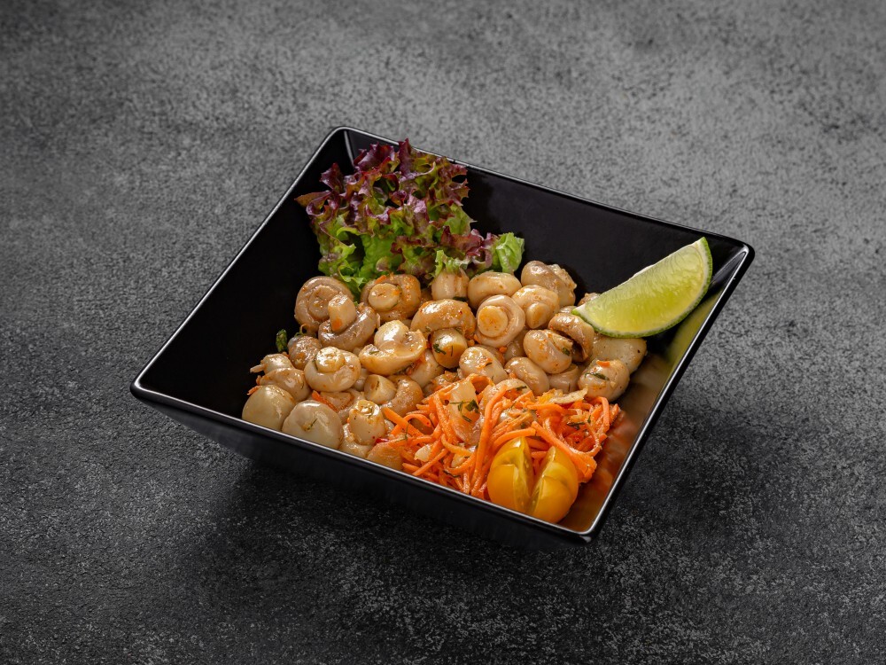 Шампиньоны – пикантное кушанье, которое не оставит равнодушным ни одного гурмана. Грибы приготовлены по оригинальному рецепту азиатской кухни, с добавлением чеснока, зелени и специй.
