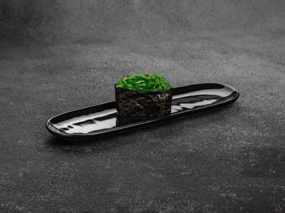 Погрузитесь в мир восточных вкусов с нашим гунканом, где нежный рис и пикантные специи гармонично сочетаются с изысканным салатом чука и насыщенным ореховым соусом